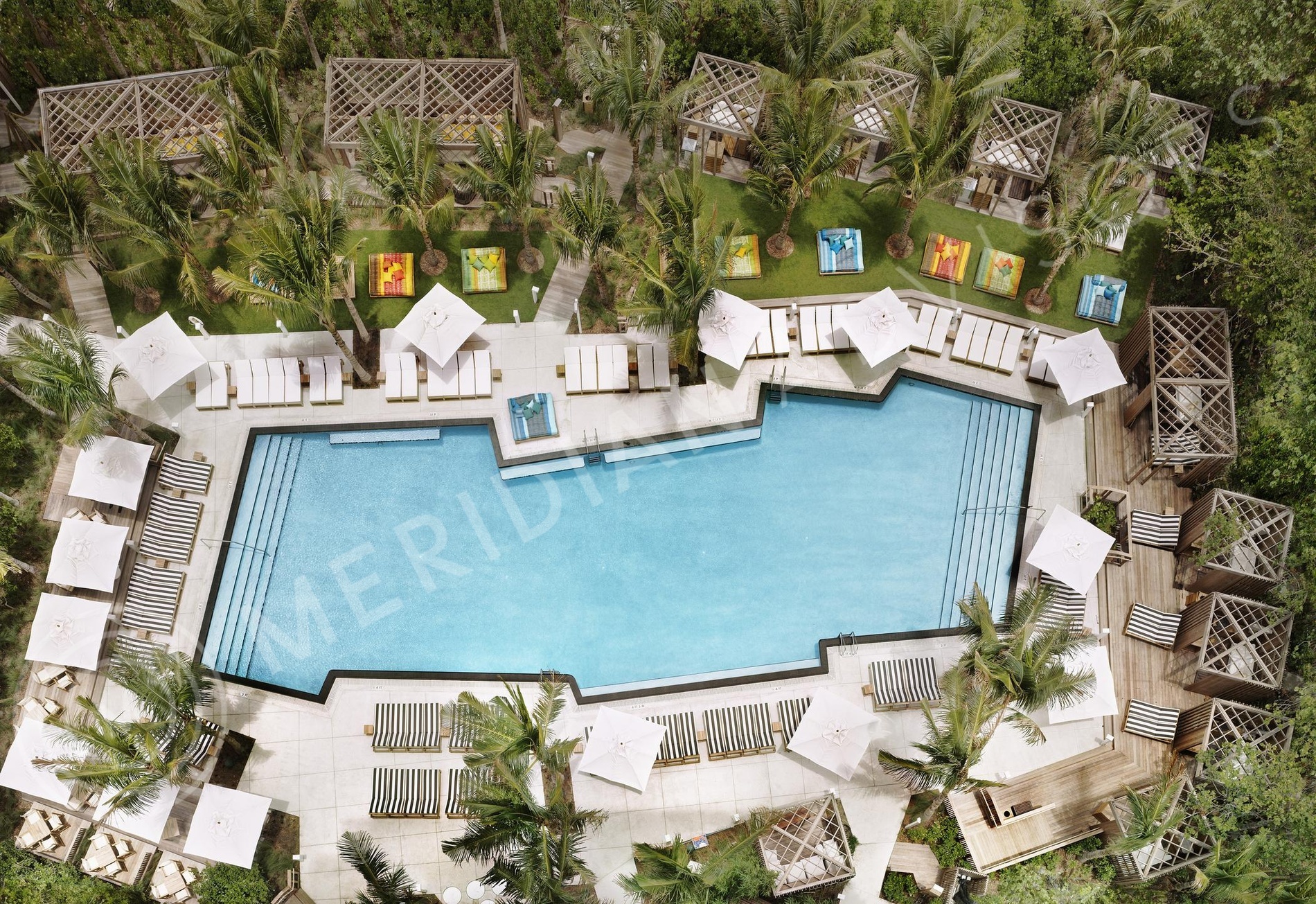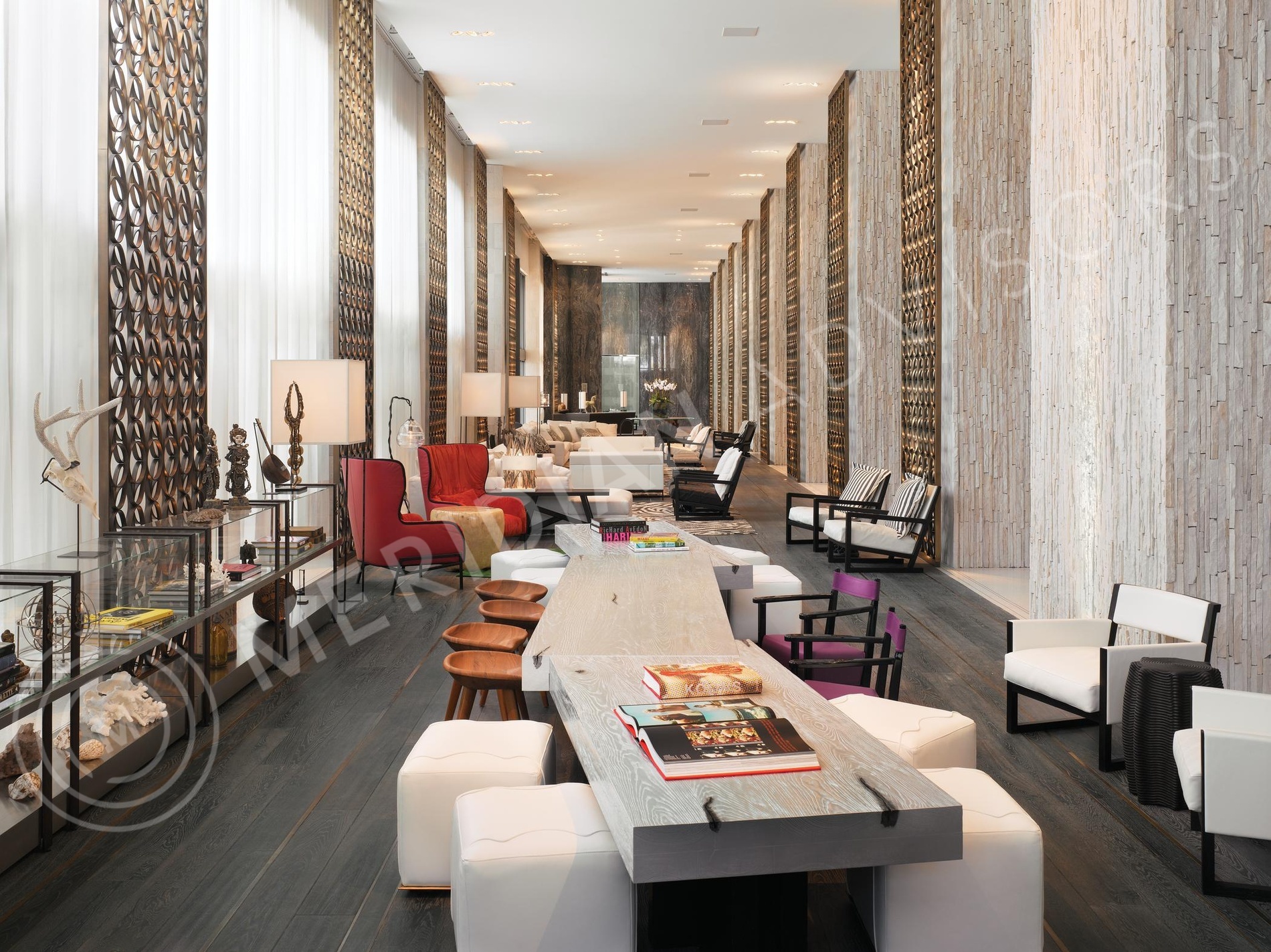 The W offers 300 feet of pristine oceanfront, two outdoor pools, private pool cabanas, a secret garden, the lavish Bliss spa, fabulous public spaces designed by Yabu Pushelburg, and spectacular dining options, including the famed Mr. Chow restaurant. It also contains Wall, one of the hottest nightclubs in Miami Beach. A unique amenity of the W is a rooftop sports complex, which contains basketball and tennis courts.